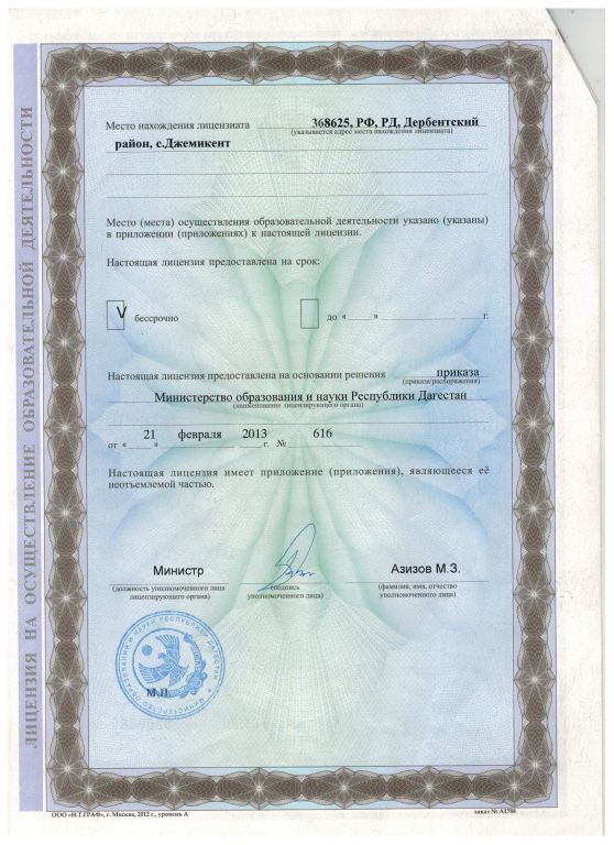 Адрес местонахождения образовательной организации* 368625, Республика ДАГЕСТАН, ДЕРБЕНТСКИЙ район, с. ДЖЕМИКЕНТ, ул. Курбанова С.Д.